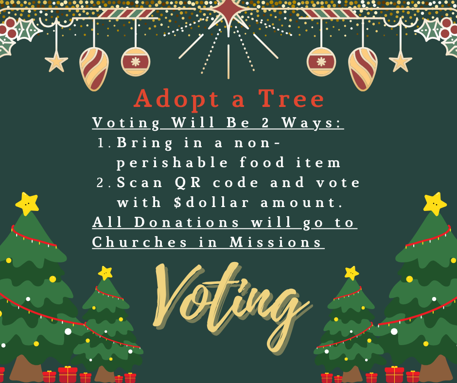Trees will be $25 this year. This is not for the cost of a Tree, but to go to Churches in Mission.